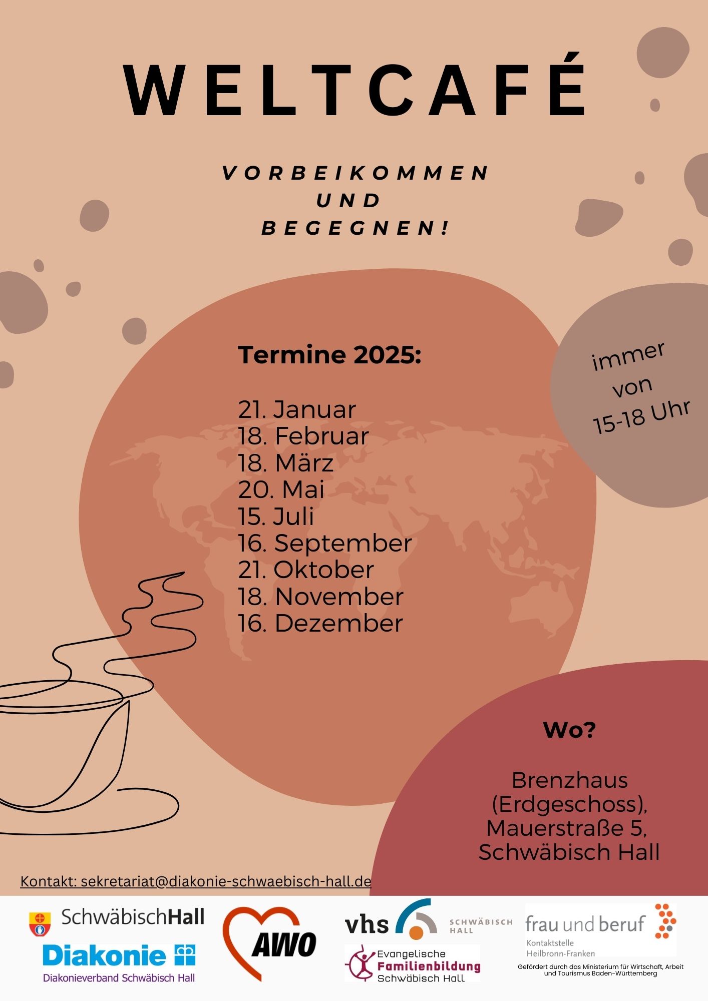 Veranstalter*innen: AWO Schwäbisch Hall, Diakonieverband Schwäbisch Hall, Evangelische Familienbildung Schwäbisch Hall, Kontaktstelle Frau und Beruf Heilbronn-Franken, Stadt Schwäbisch Hall Integrationsmanagement, Volkshochschule Schwäbisch Hall